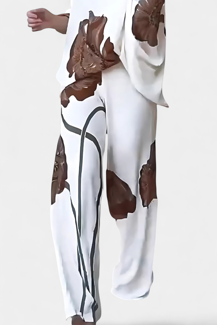 Sybella | Conjunto Floral de Dos Piezas con Hombro Descubierto y Pantalón Recto